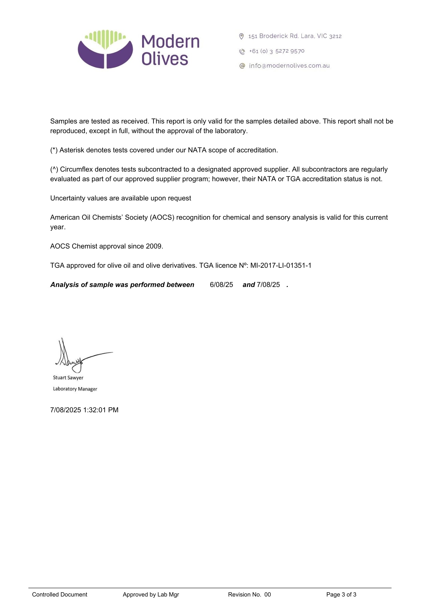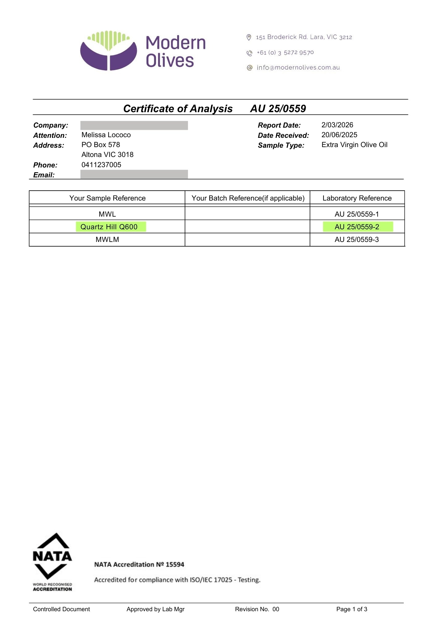 Modern Olives, NATA Accreditation № 15594