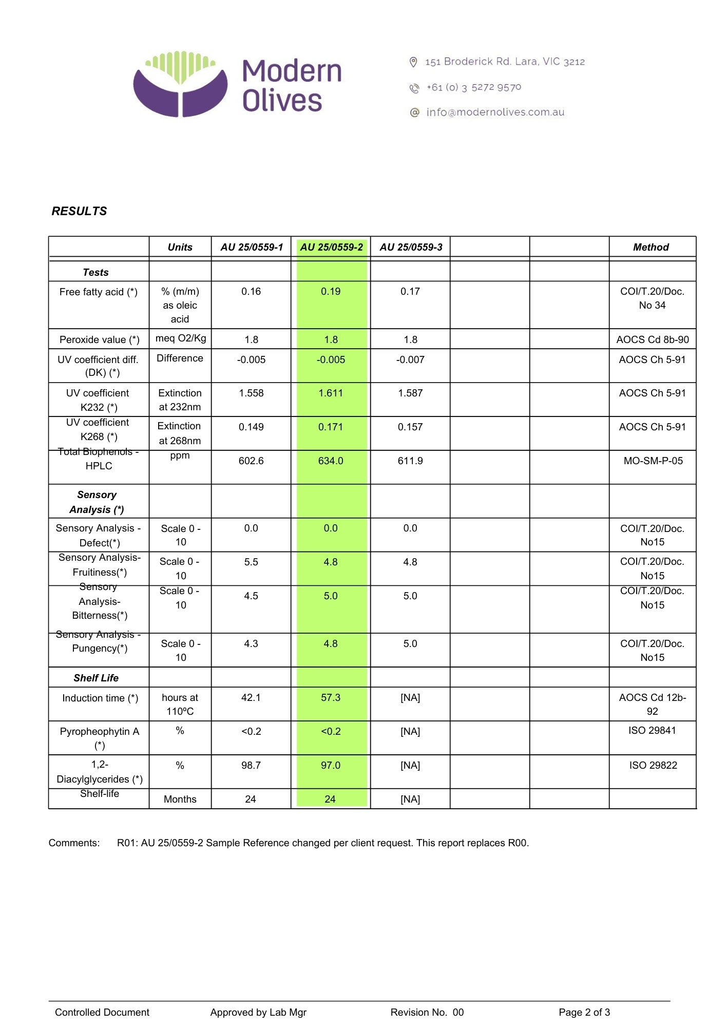 | UV Absorption K268 | <0.22 | 0.134 | 0.131 | Measures late-stage oxidation. Low value = no degradation, clean flavour. |
